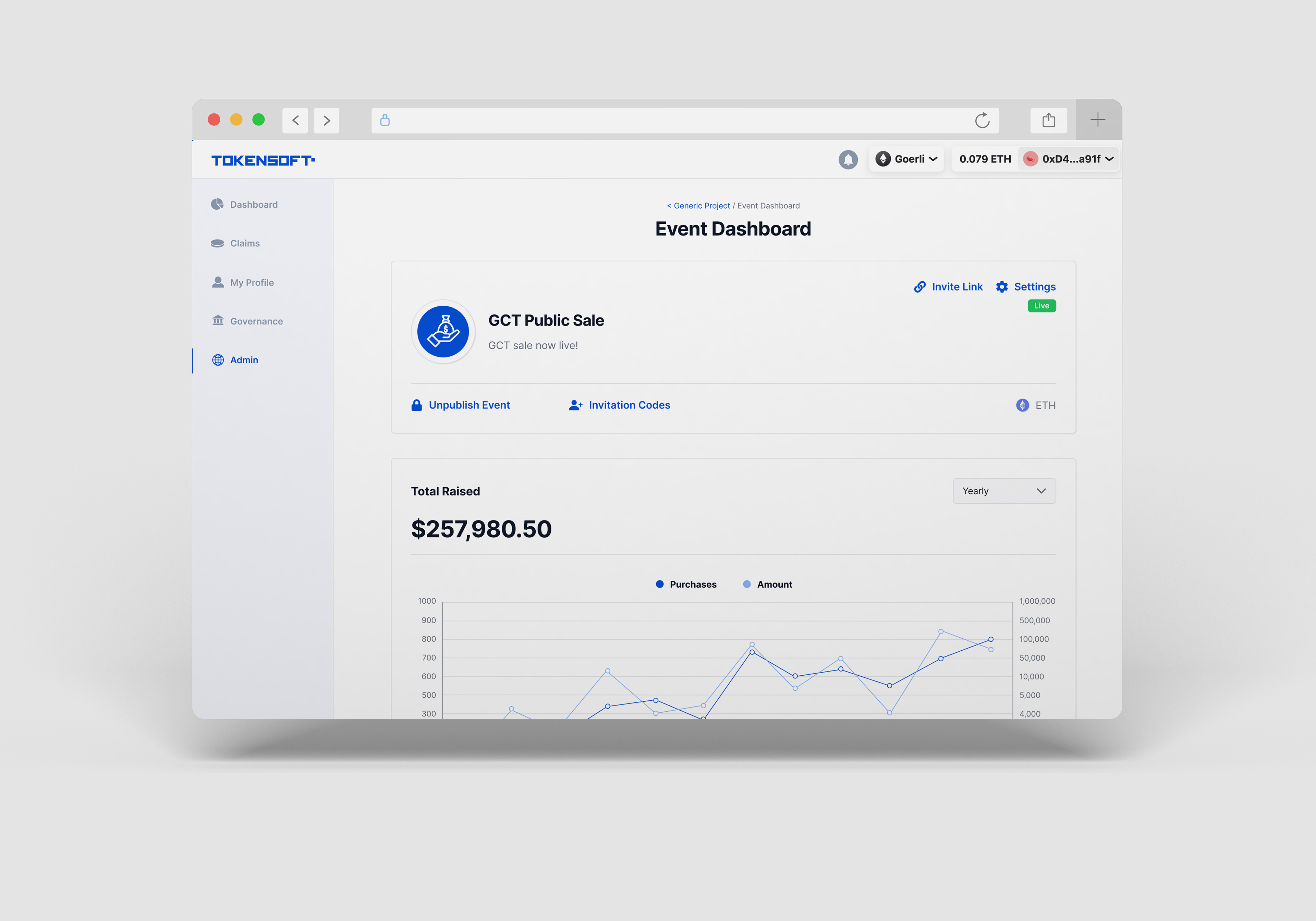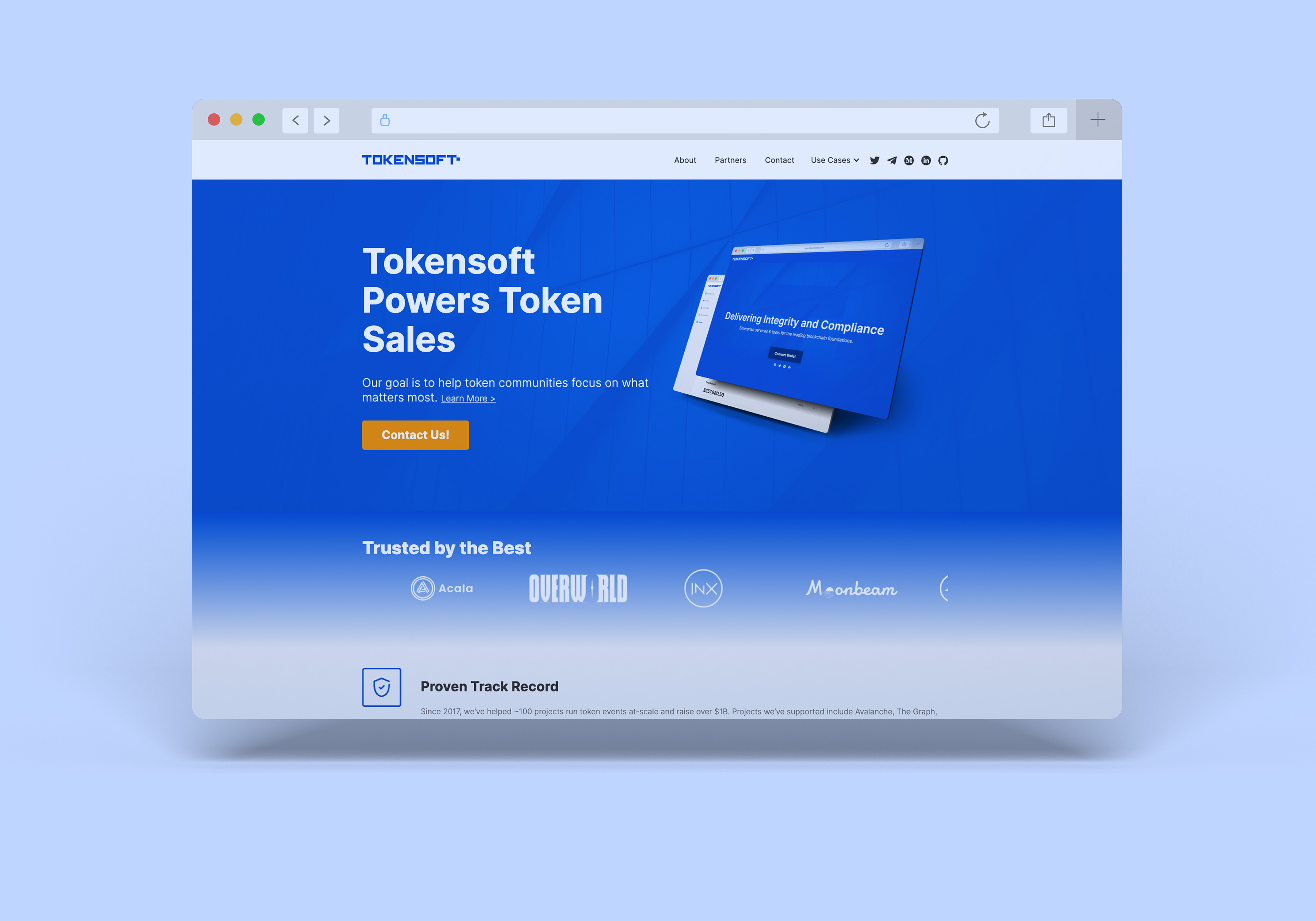 At tokensoft I helped build the re-brand from the ground up and carried throughout the marketing website and product itself.